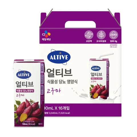 ![[CJ더마켓] 얼티브 당뇨영양식 고구마 190mlX16개(유통기한 : 2026-03-13)](https://img.cjthemarket.com/images/file/product/551/20250721105051047.jpg?SF=webp&RS=480)